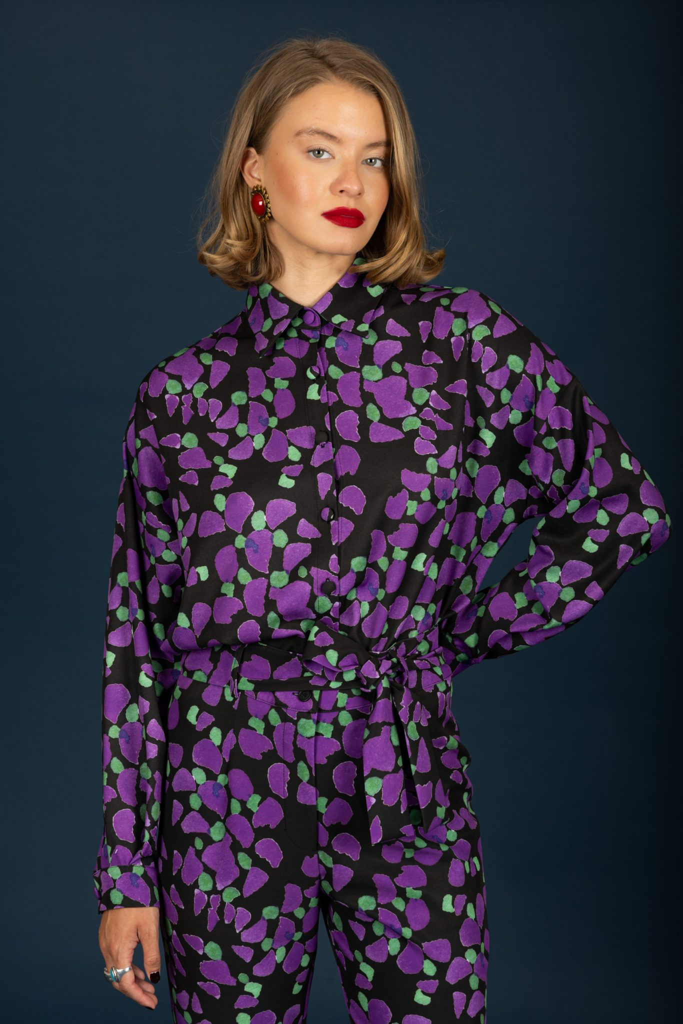 Composition: 65% polyester 35% viscose. Model wears size Small.