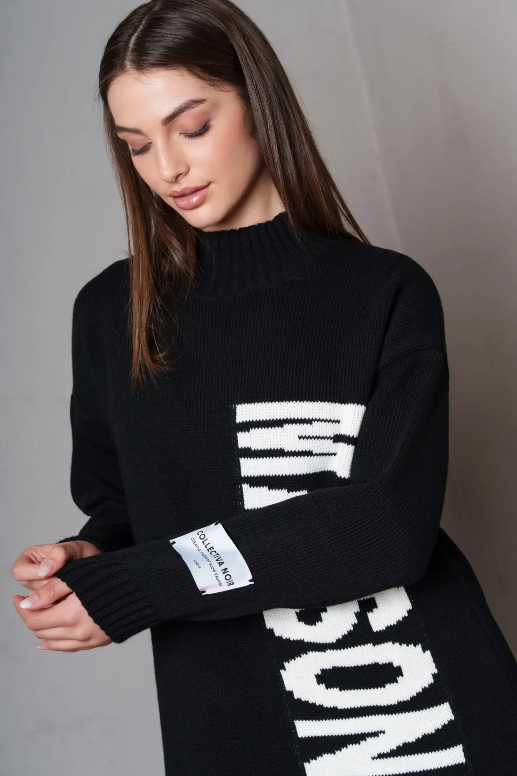 Μακρυμάνικο πλεκτό φόρεμα με ζακάρ Logo Maison