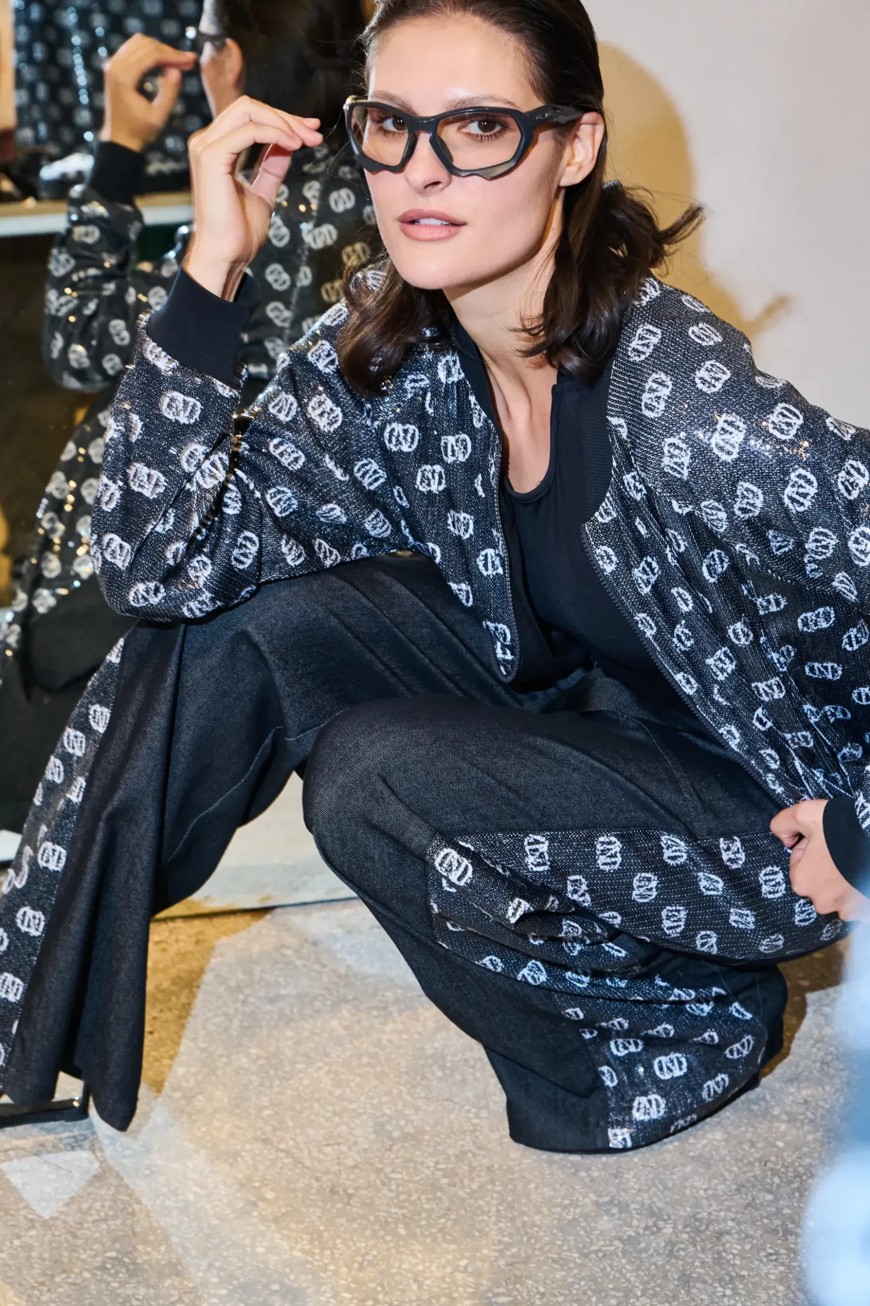 Bomber jacket από παγιέτα με το νέο logo της CN
