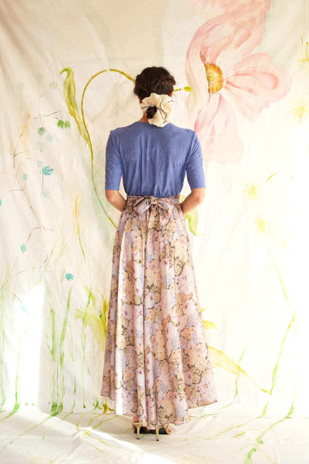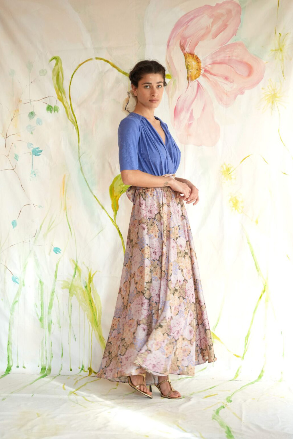 σε συνδυασμό με ψηλόμεση floral φούστα και ζώνη του ίδιου print.