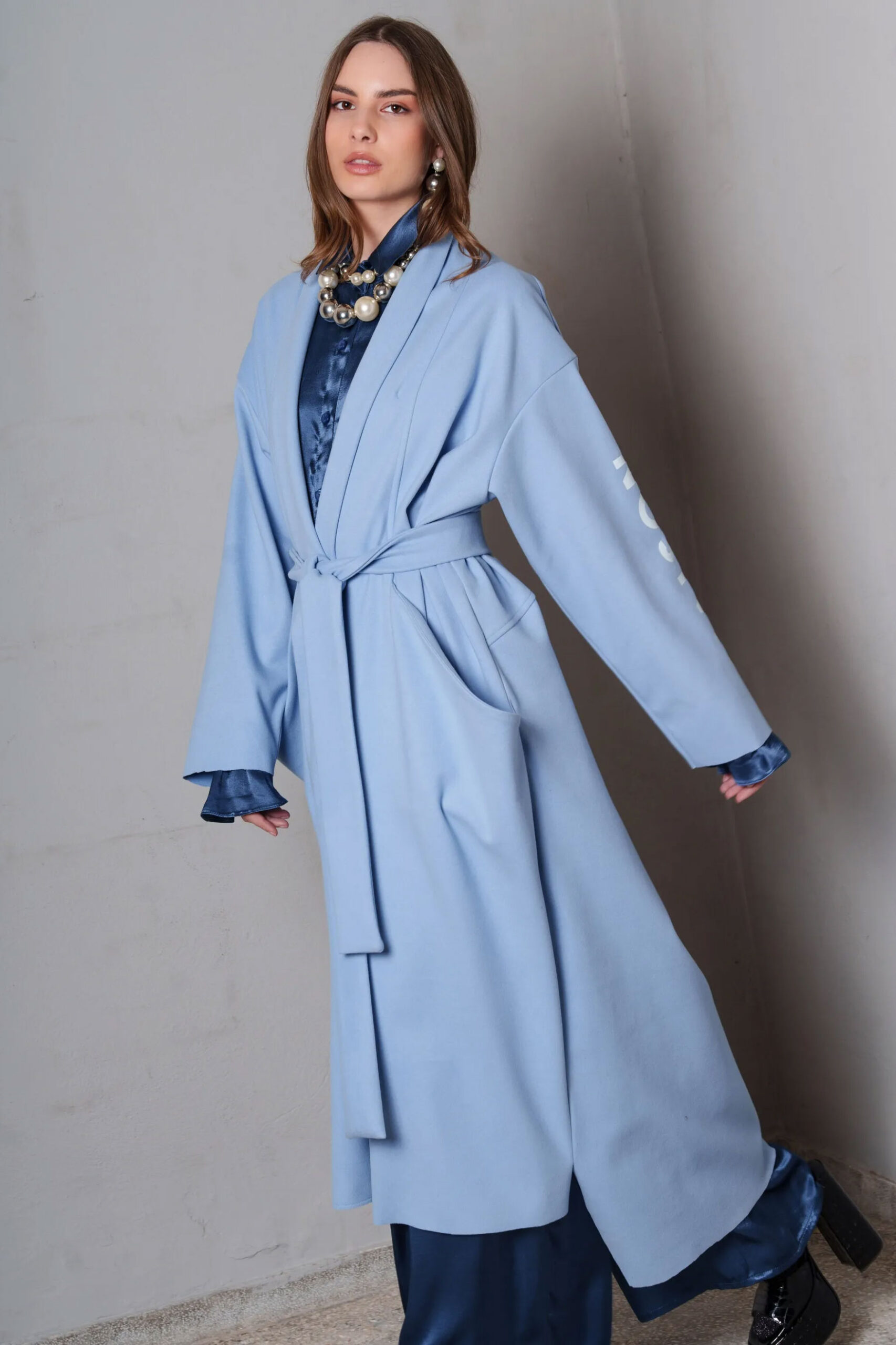 Σχεδιαστικό τσόχινο παλτό σε γαλάζιο χρώμα