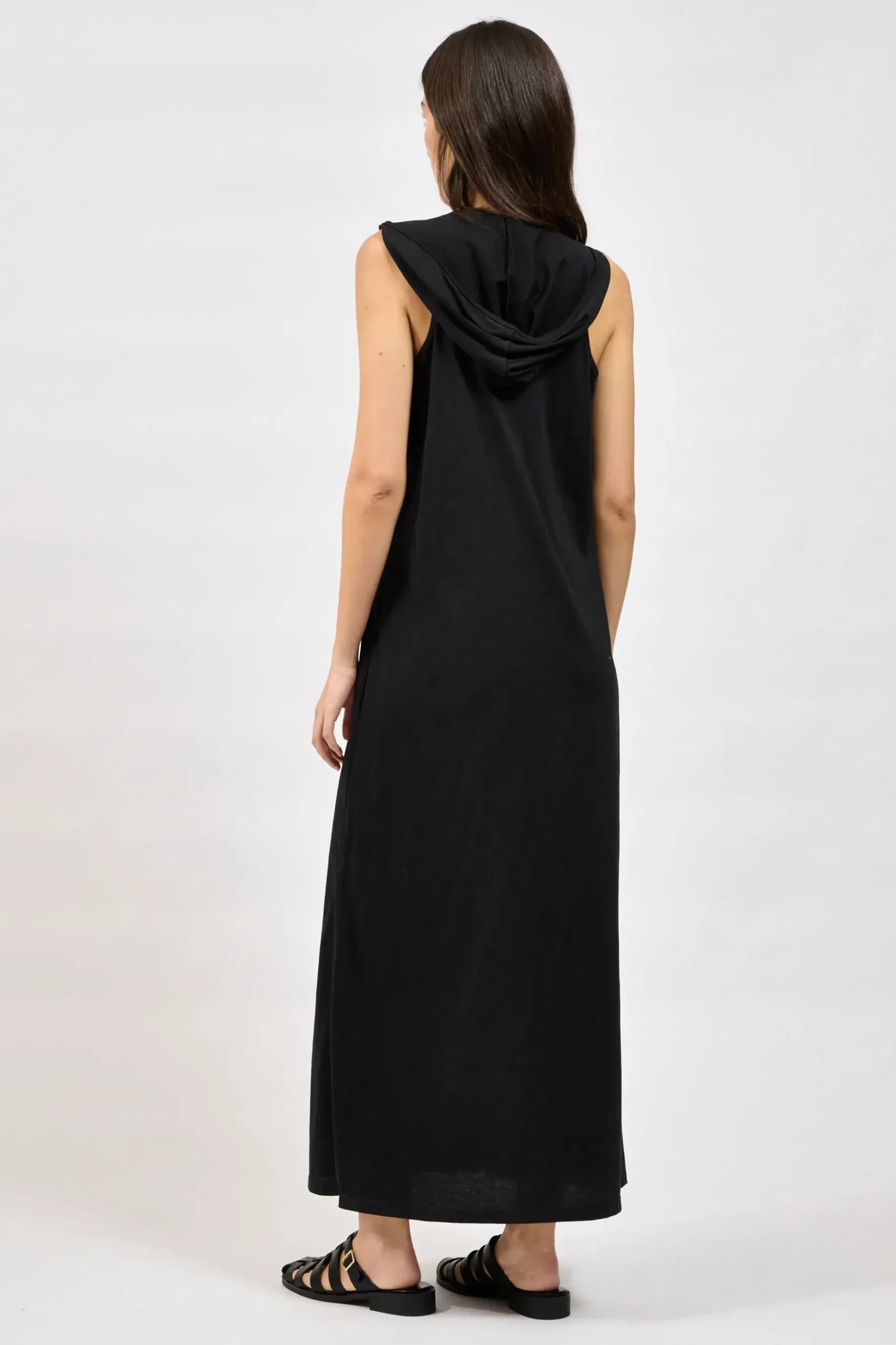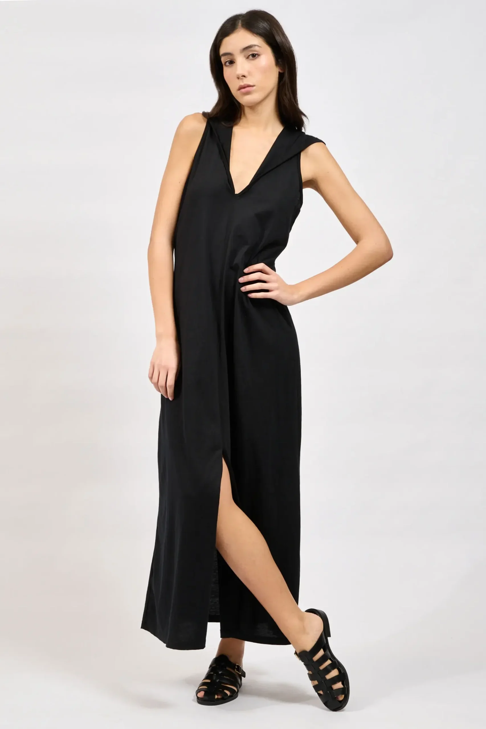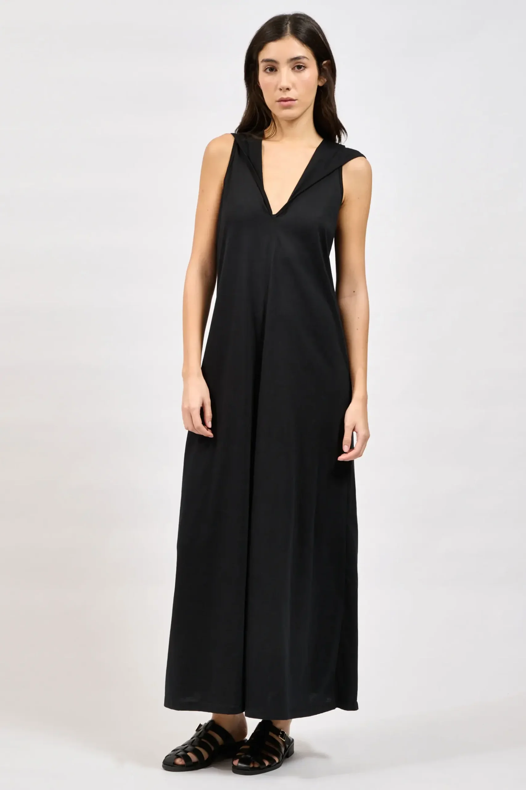 Sleeveless long dress with a deep plunging neckline