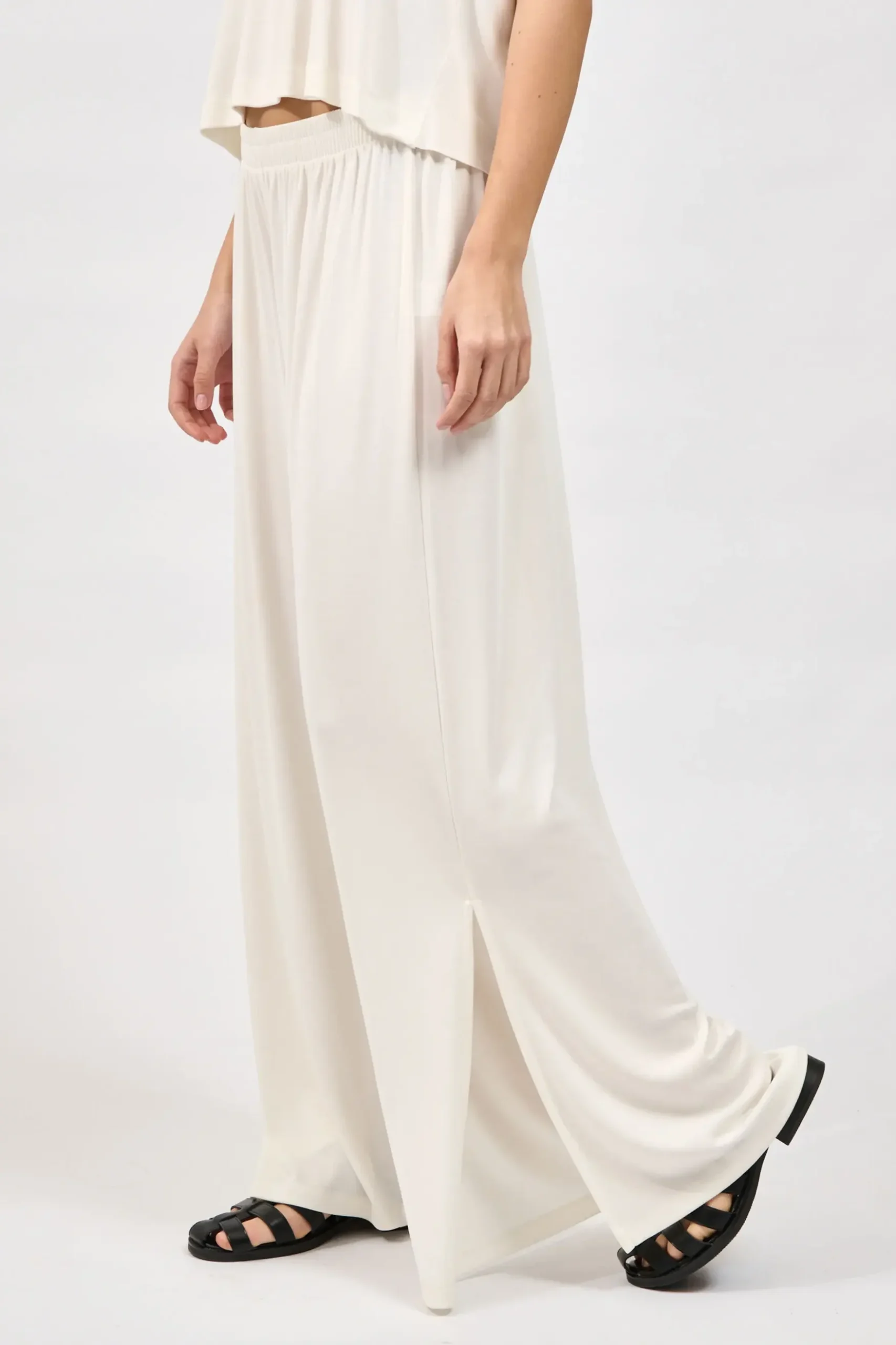 Long wide-leg pants with an elastic waistband