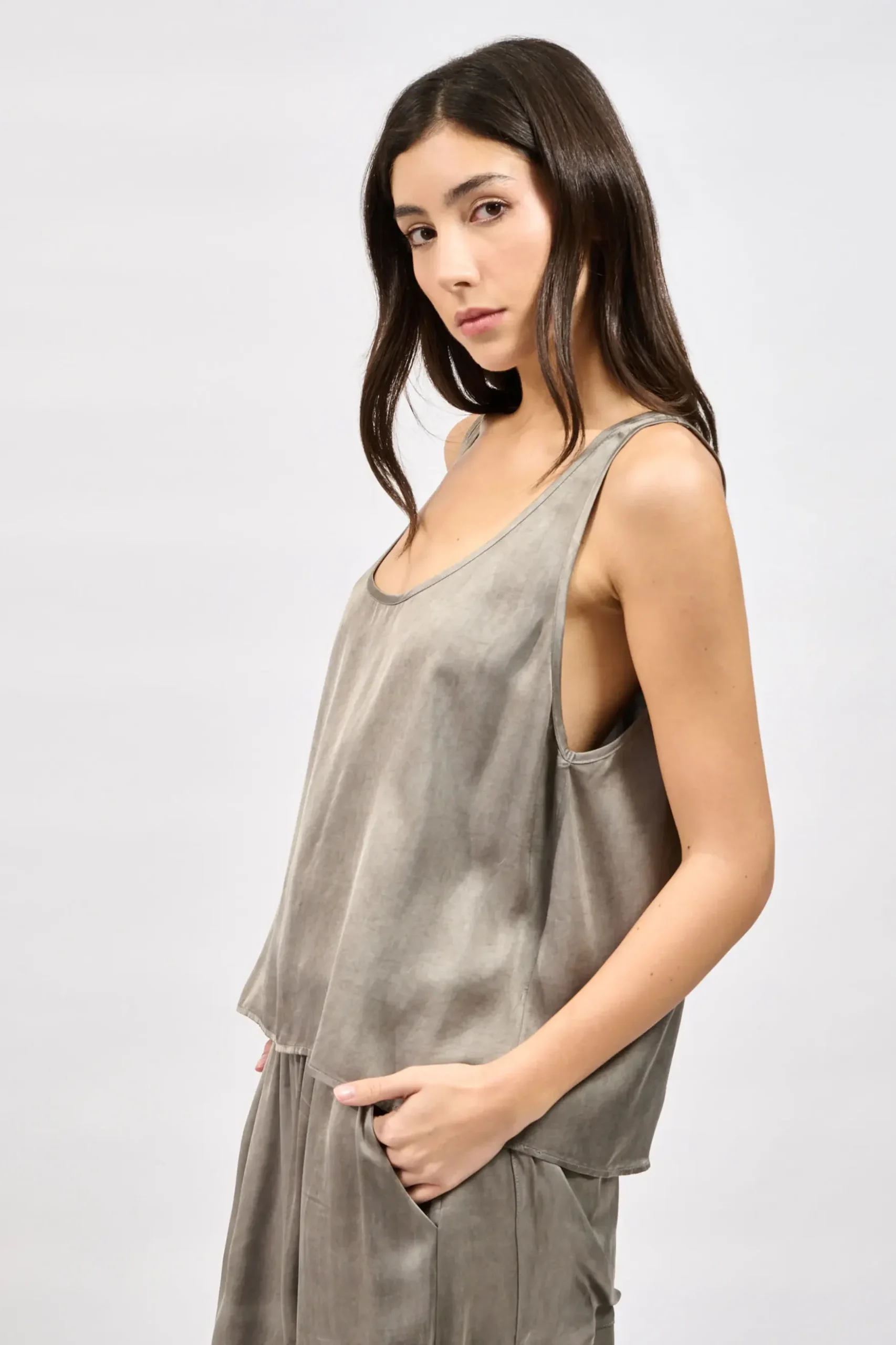 Sleeveless top with a scoop neckline
