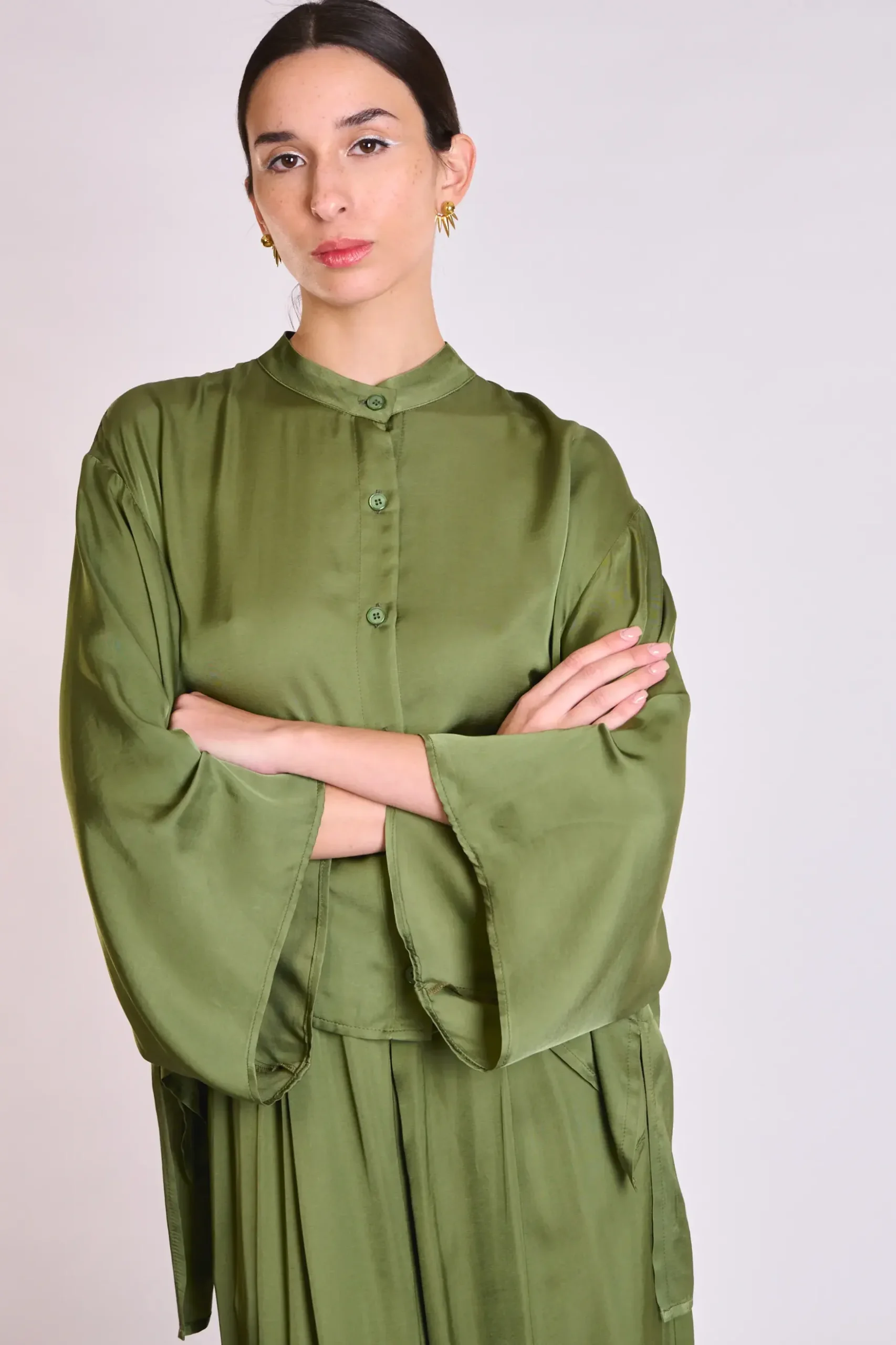 Wide, sculptural sleeves for effortless movement